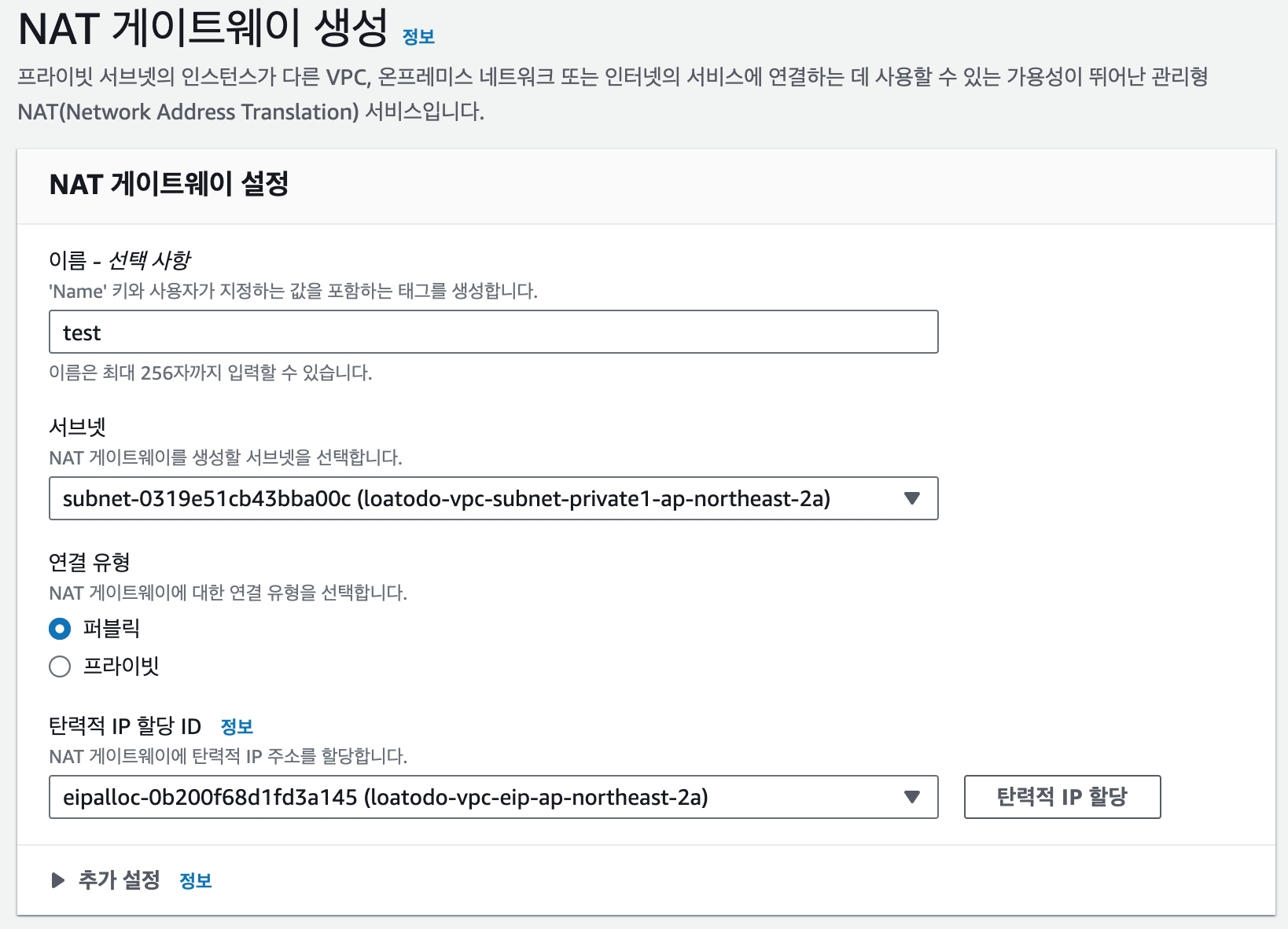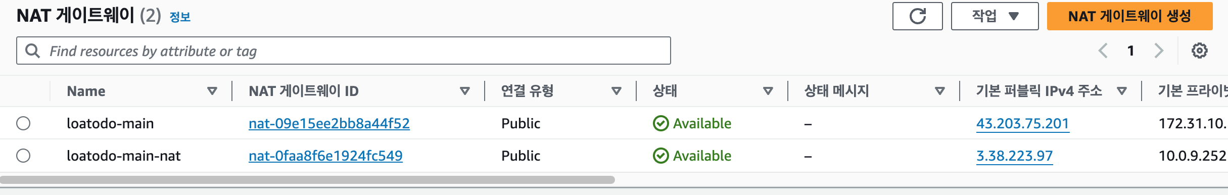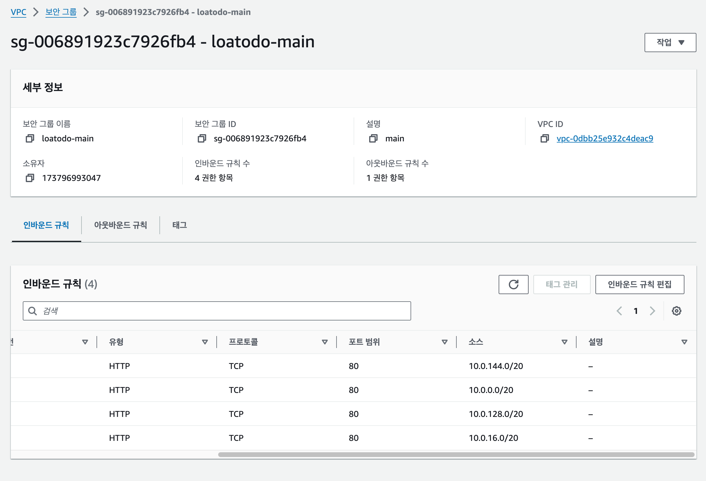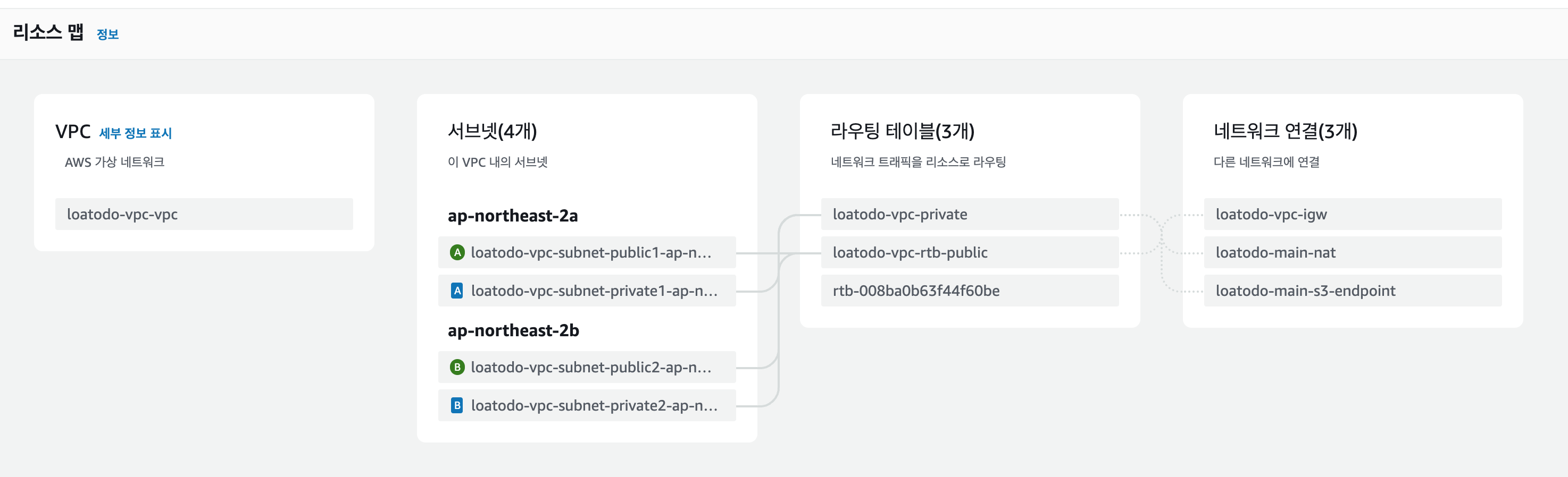 여기에 추가로 loatodo-vpc를 생성하였다.