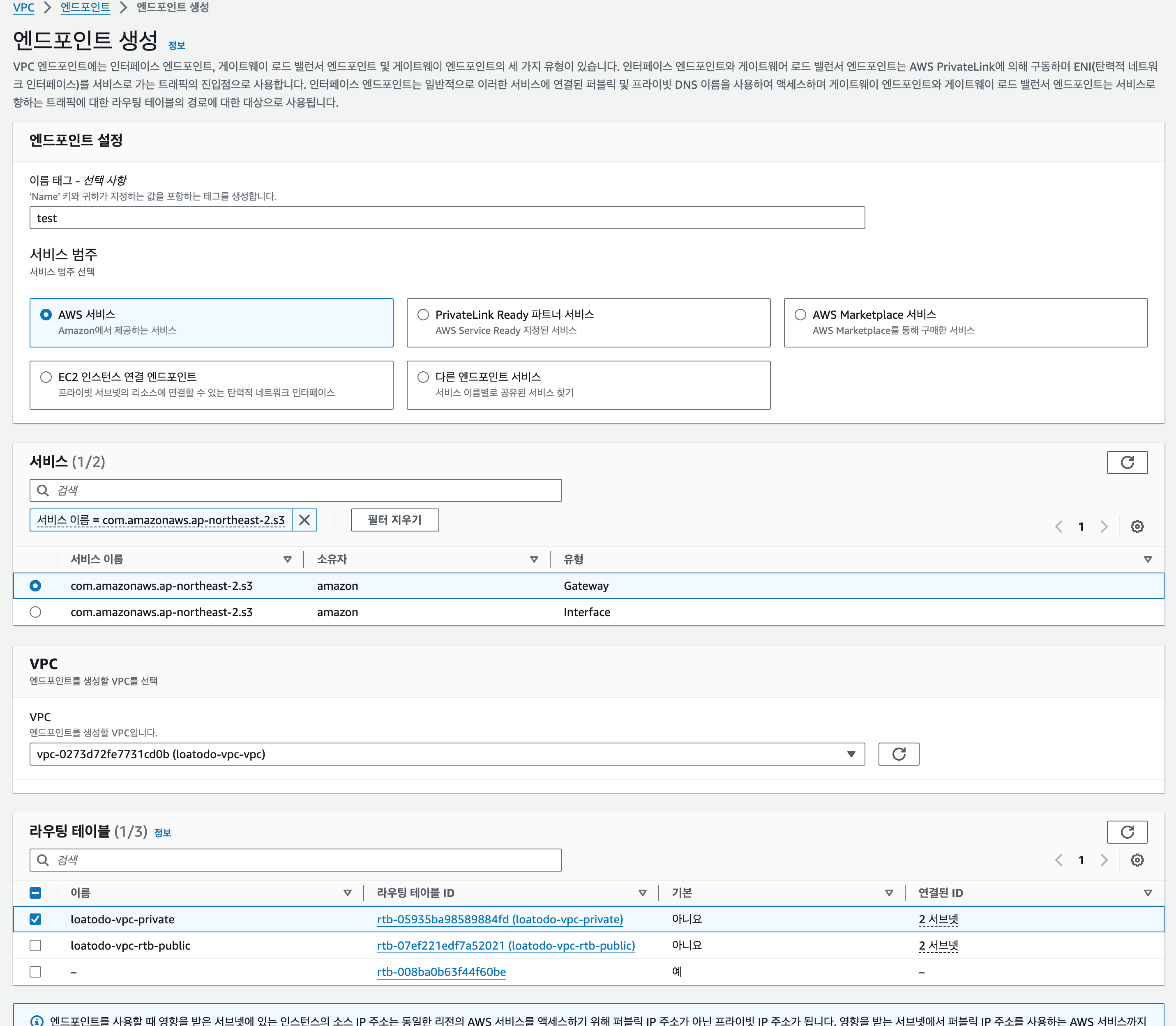 - S3 엔드포인트 연결 (뒤에 추후 설명)