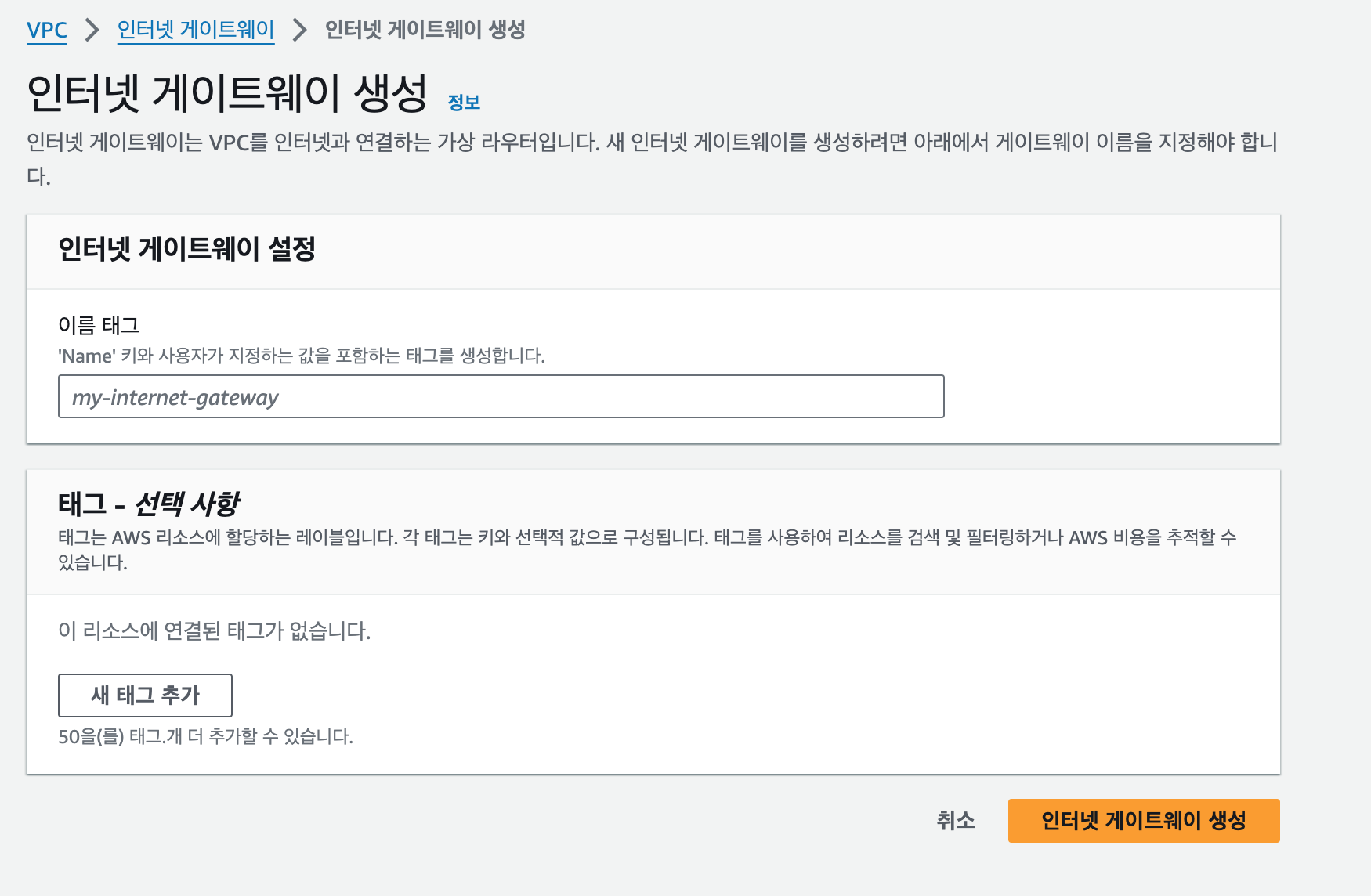 인터넷 게이트웨이는 간단하게 생성할 수 있다.